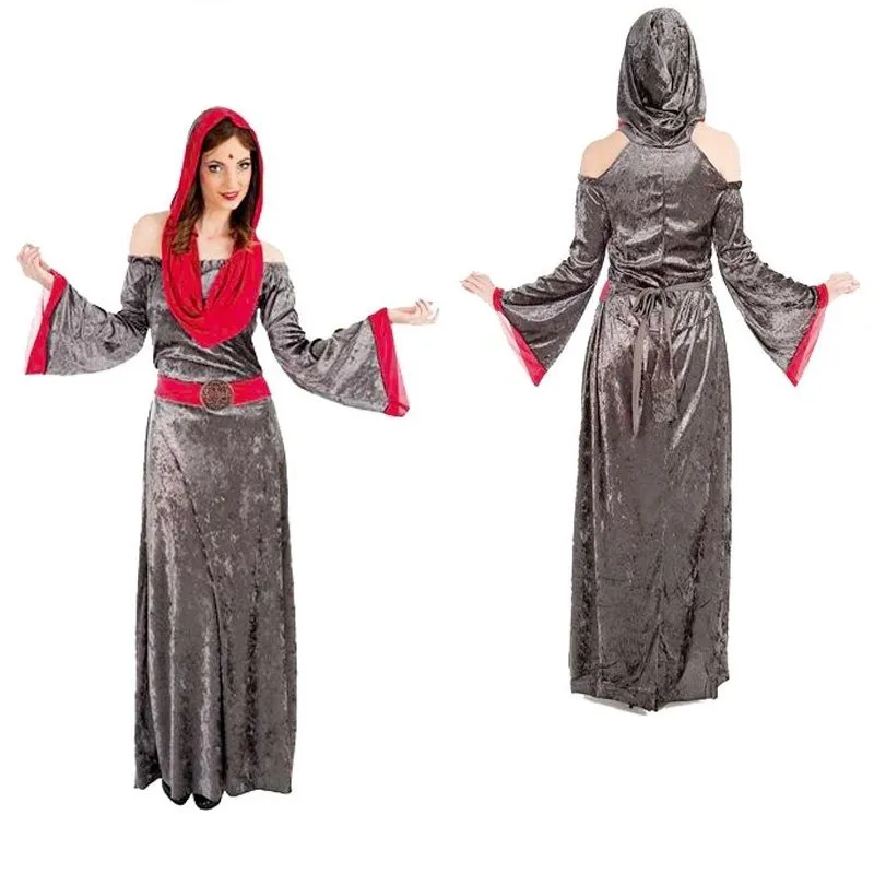 Ce costume comprend la robe longue grise et rouge avec la capuche intégrée, pas de doute vous allez faire très mystérieuse dans cette robe.