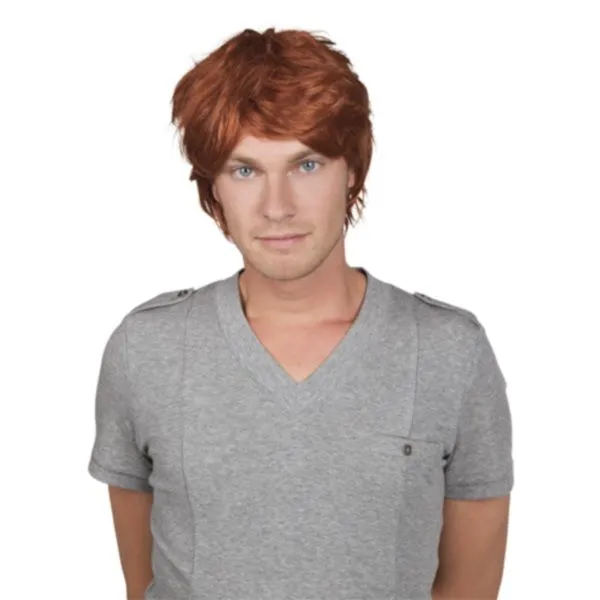 Perruque châtain pour homme, coupe courte.