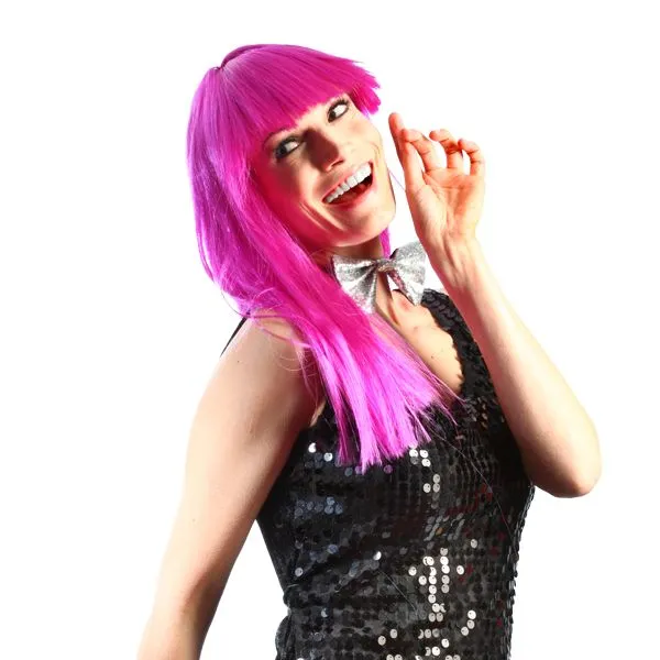 Perruque Dance Fever, cheveux coupe longue et frange droite.